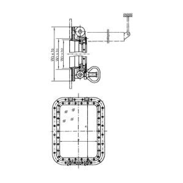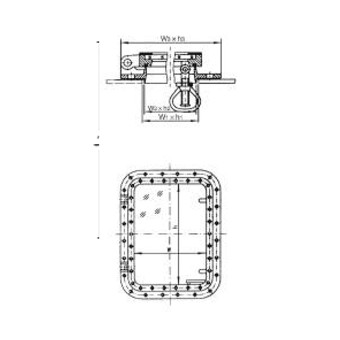耐火系列(P),轻 型(F),公称尺寸560×800mm,凸肩高度16mm,上铰链内上开(ITB),矩形窗 P-F6×16-ITB-333 GB/T 5746-1996